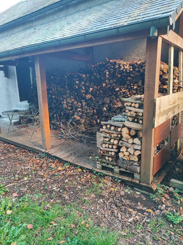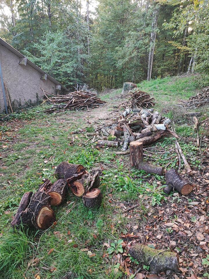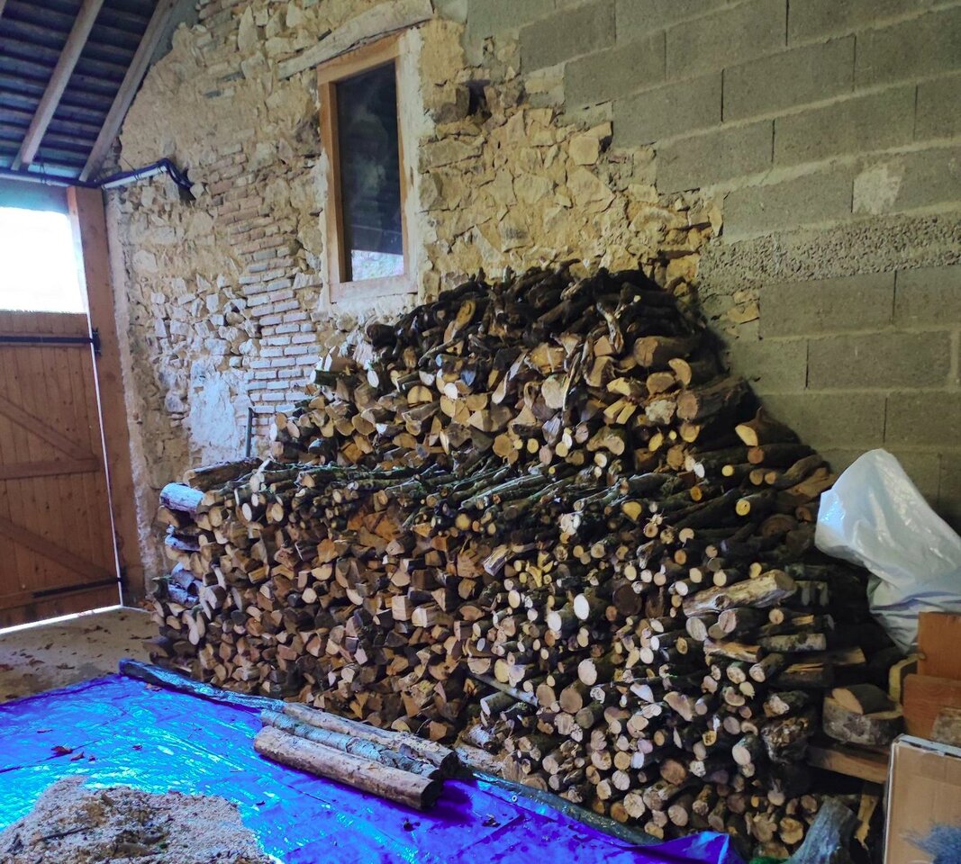 - Et sinon, du bois, du bois, encore du bois ! Nous avons passé beaucoup de temps à ramasser, entasser, couper, fendre, ranger du bois. Des branches jonchant la forêt aux sapins morts (et menaçants), nous avons pu récupérer et préparer pour l’hiver quelques stères de bois, et en mettre d’autres à sécher – les bois de cette année ne seront pas secs et prêts avant 2 ans.