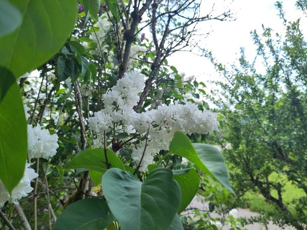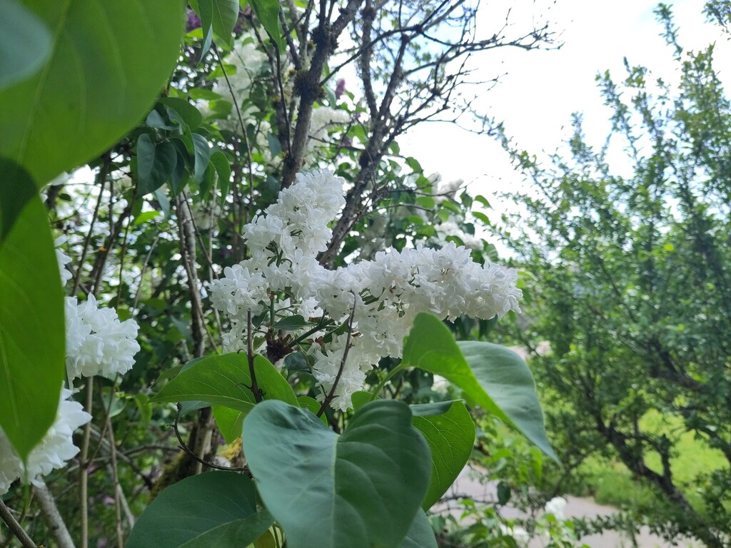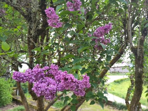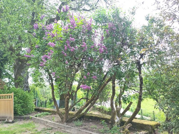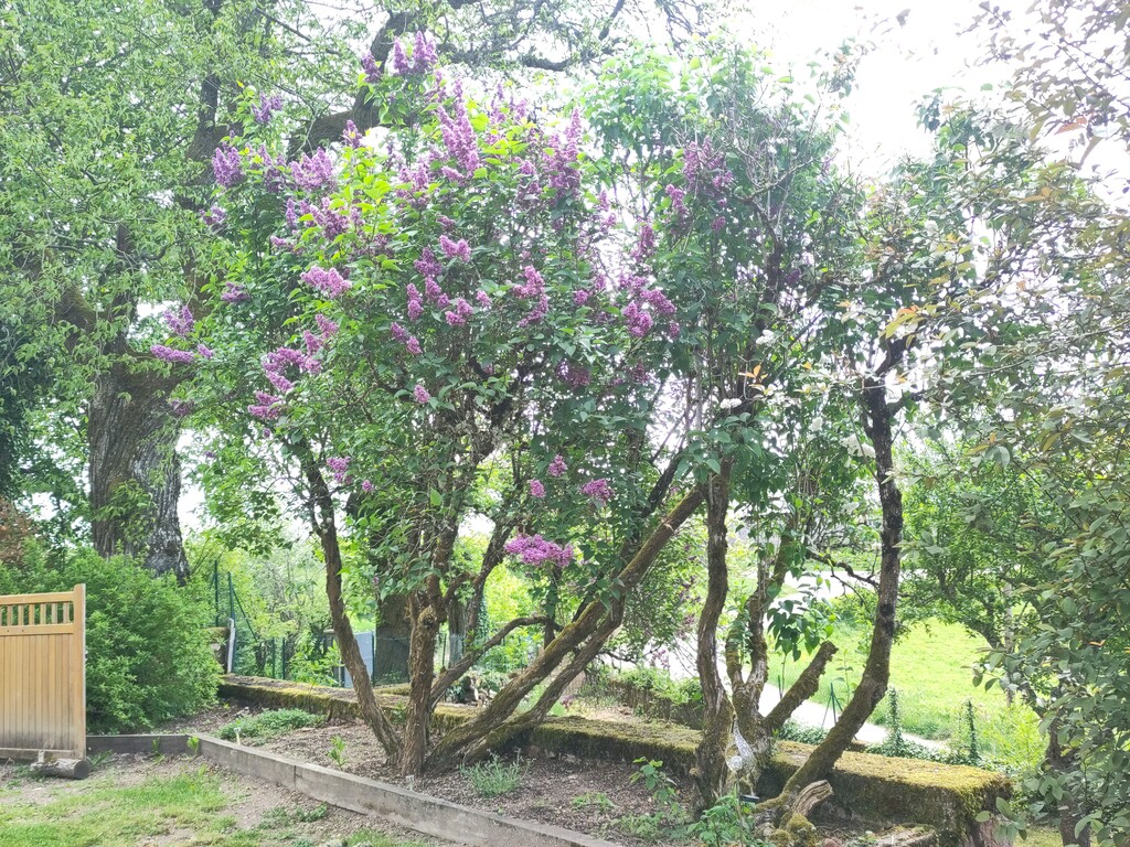 Il y a deux vieux lilas dans la cour, devant le perron : un mauve et un blanc.